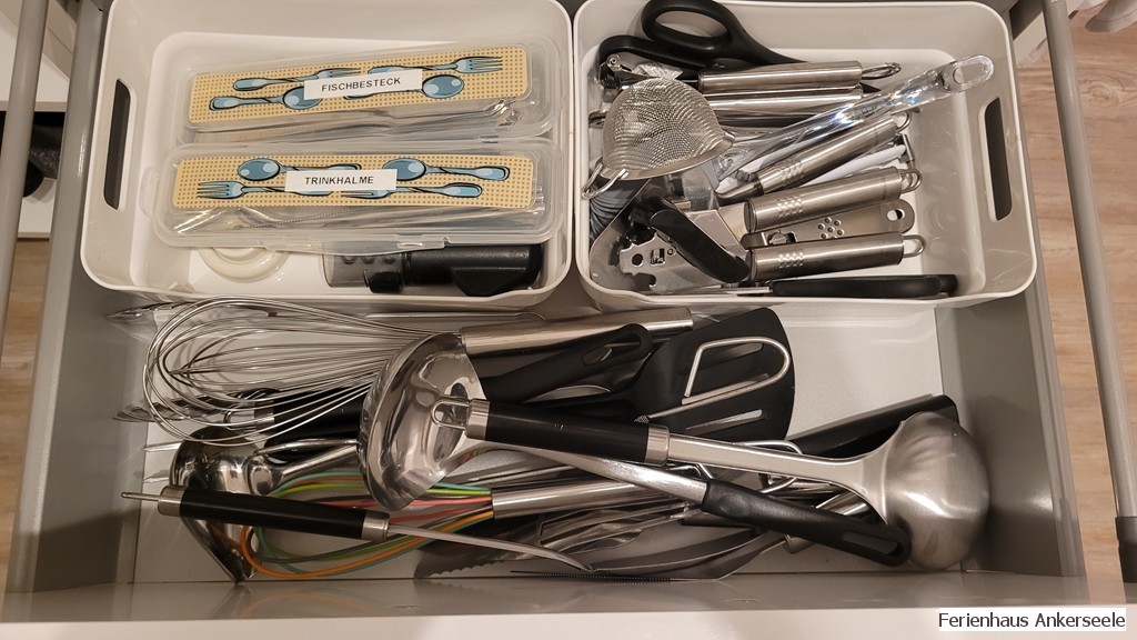 Genügend Geschirr u. Gläser, ausreichend Kücheninventar wie Töpfe, Schüsseln etc.