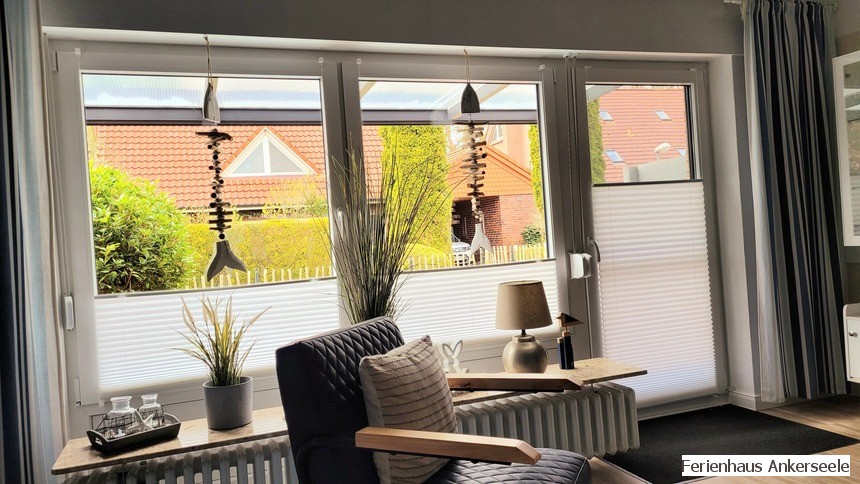 großer bodentiefer Fensterfront. Über die Terrassentür gelangen Sie auf
