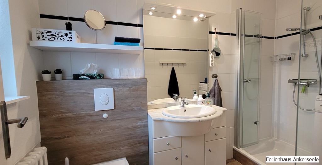 links in ein Tageslicht-Duschbad, rechtsseitig kommen Sie in die
