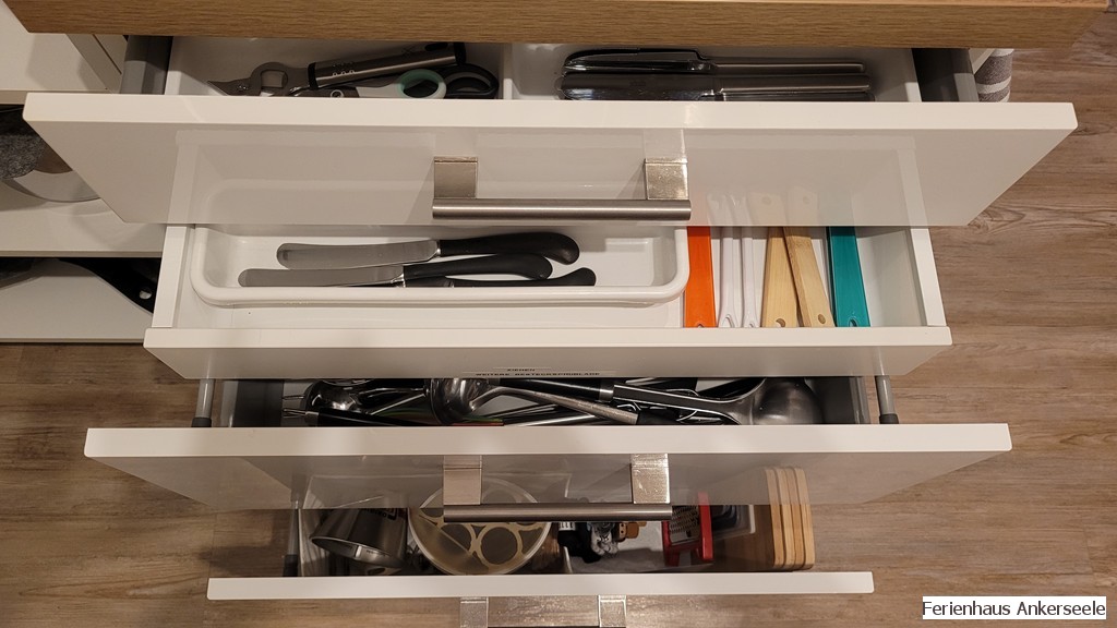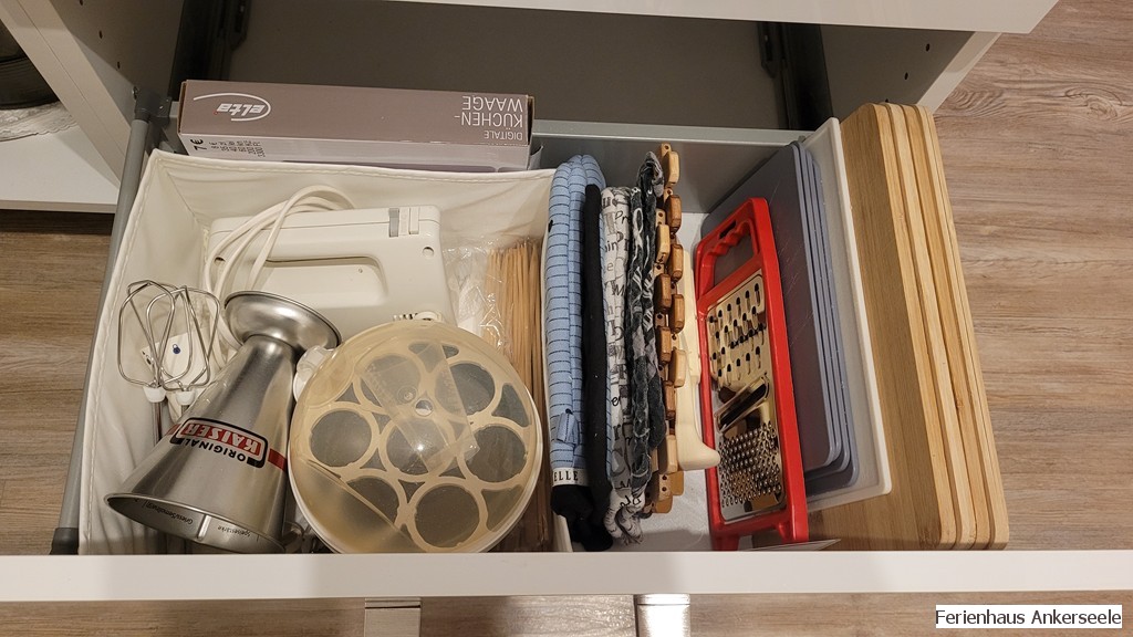 Genügend Geschirr u. Gläser, ausreichend Kücheninventar wie Töpfe, Schüsseln etc.